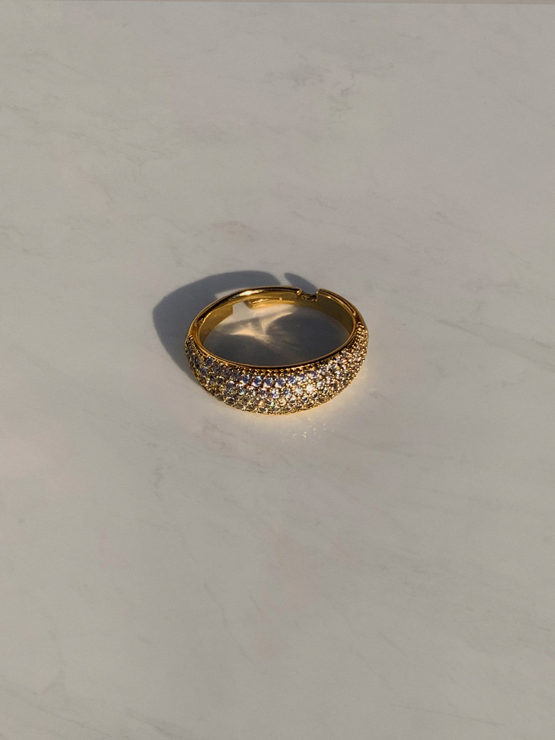 The ring is 18K Gold plated. The brass base has first been beautifully crafted into a marvelous shape that has later been carefully coated in a thick layer of 18K Gold.