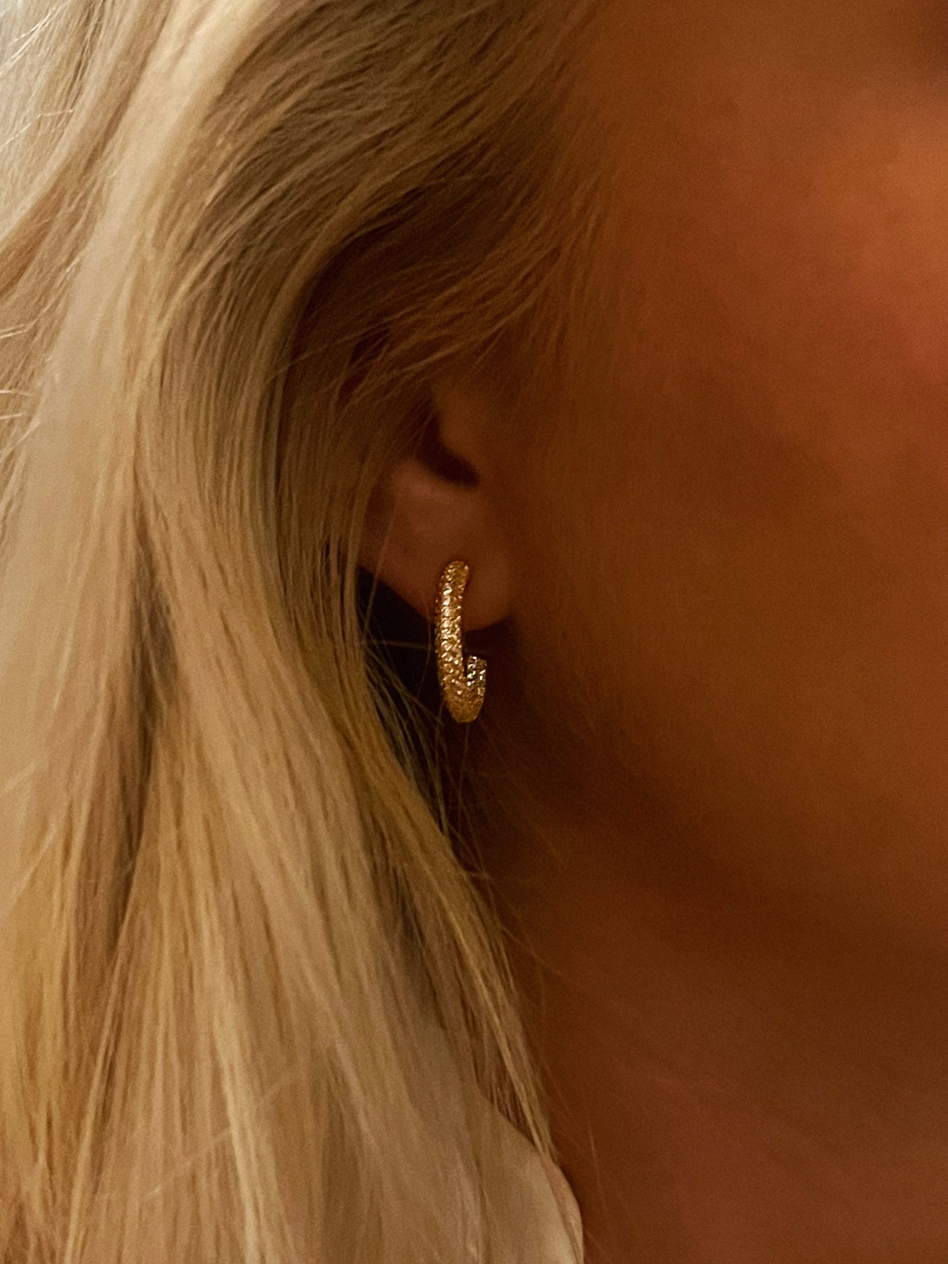 This earring is 18K Gold plated. The brass base has first been beautifully crafted into a marvelous shape that has later been carefully coated in a thick layer of 18K Gold.