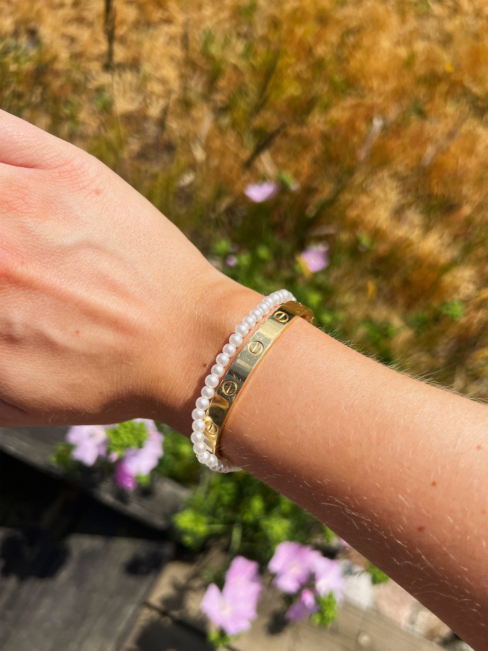 Our simple pearl bracelet is made with faux pearls and is a great alternative to our freshwater pearl bracelet.