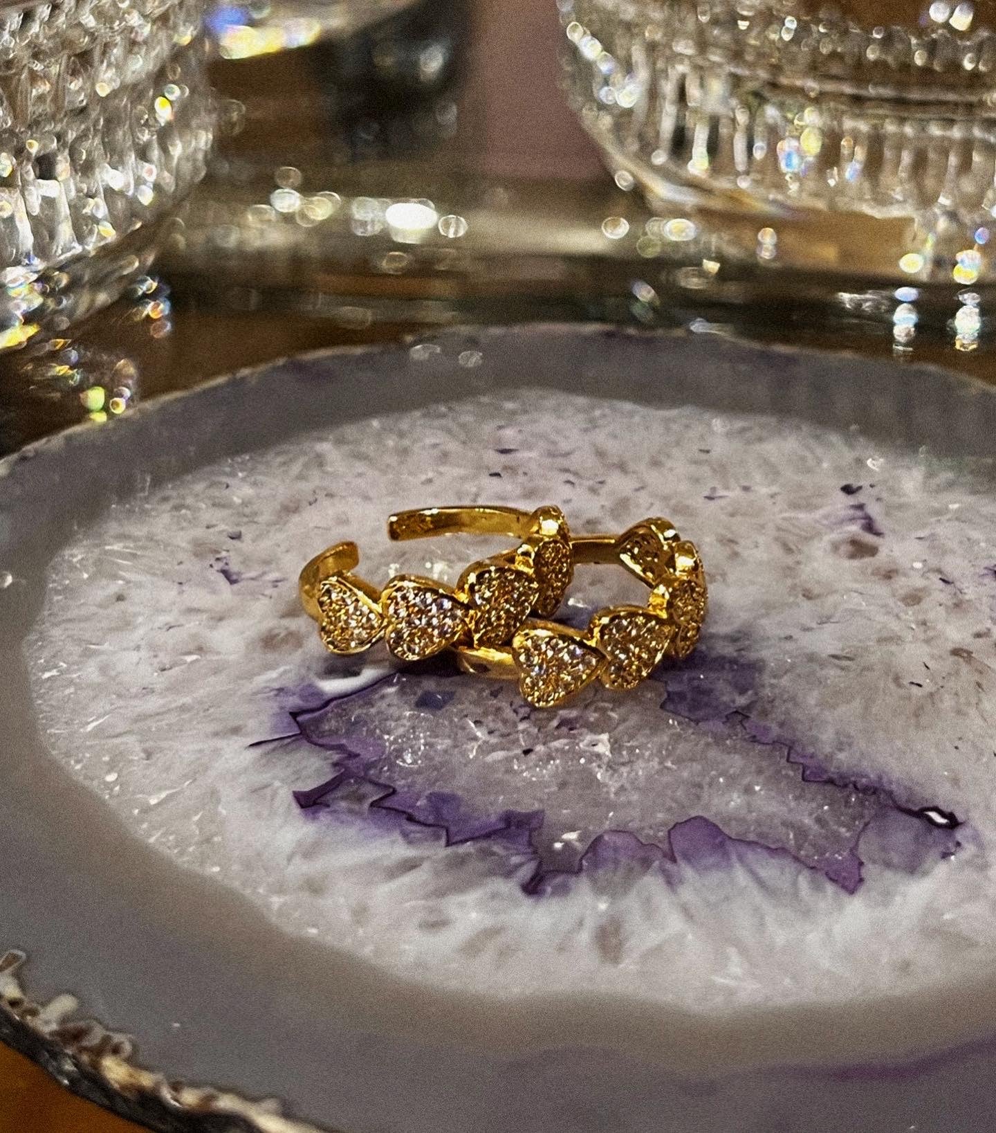 The ring is 18K Gold plated. The brass base has first been beautifully crafted into a marvelous shape that has later been carefully coated in a thick layer of 18K Gold.